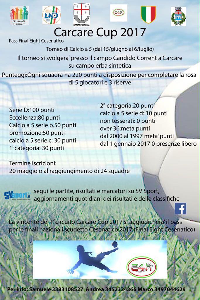 Badate bene di non prendere impegni. Il prossimo 2 giugno, alla presentazione della Carcare Cup, obbligatorio essere presenti: una ventata d'aria nuova s'appresta a travolgere Carcare regalando una kermesse unica nel suo genere e di rilevanza nazionale. Si tratta di una nuovissima manifestazione, che quest'estate aprirà i battenti per la prima...