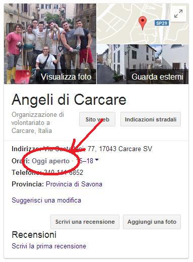 Cercando su Google "Angeli di Carcare" puoi verificare in ogni momento se la nostra sede sia regolarmente aperta.